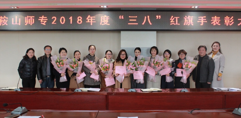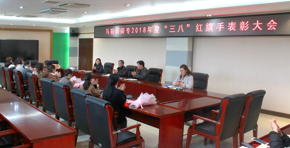 会议宣读了2018年年度“三八”红旗手校级表彰名单,吴志华,张程刚为获奖者颁发荣誉证书和鲜花。