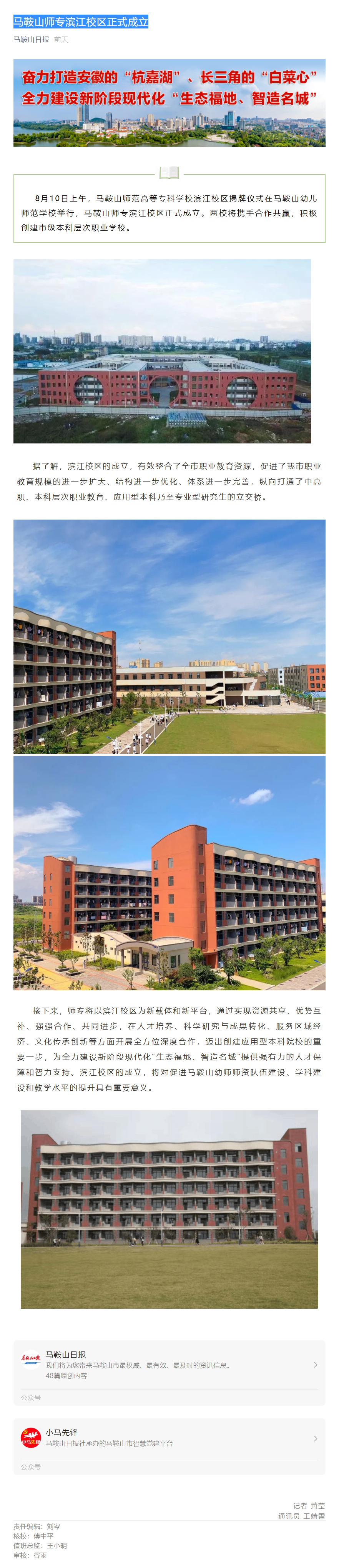 【马鞍山日报】马鞍山师专滨江校区正式成立