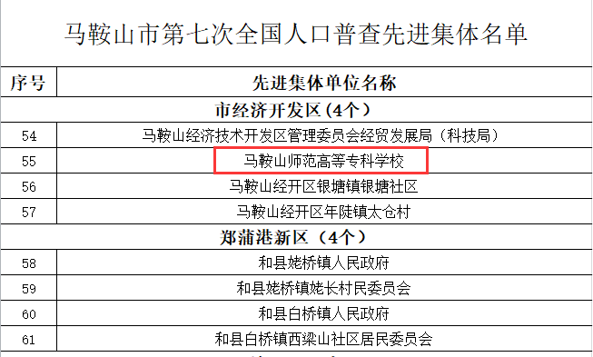 喜报:学校荣获马鞍山市第七次全国人口普查先进集体