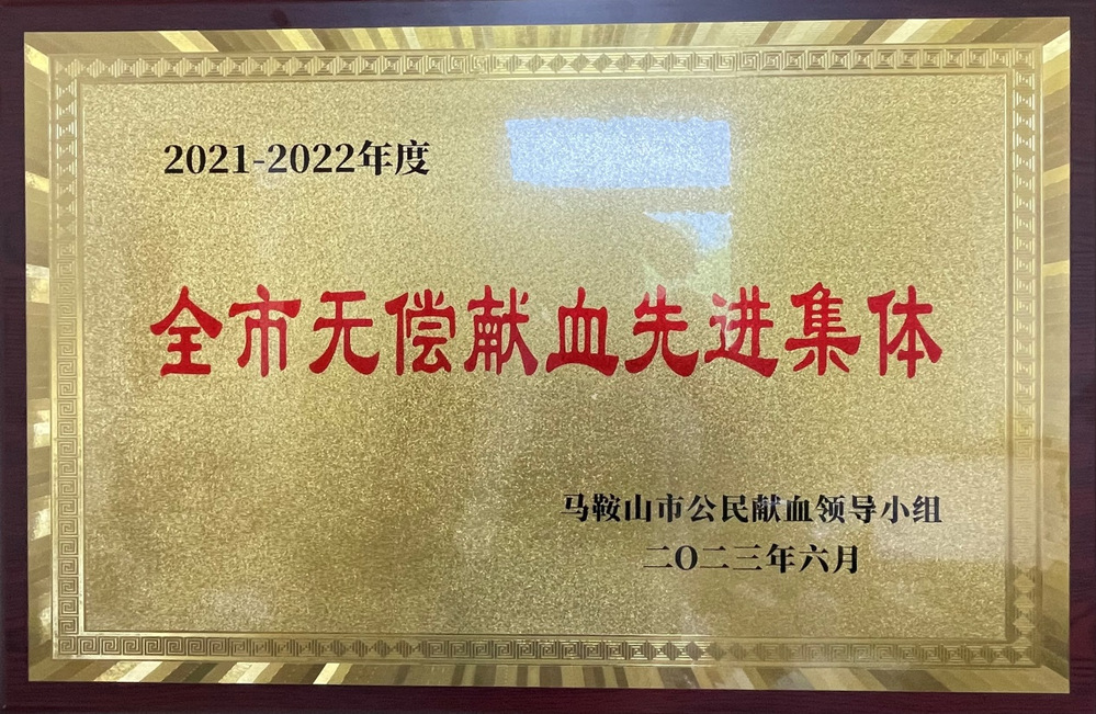 日前,马鞍山市公民献血领导小组发布通报,公布2021-2022年度全市无偿献血先进单位和优秀组织者名单。BB贝博艾弗森官网荣获2021-2022 年度“全市无偿献血先进集体”,张国平同志荣获2021-2022 年度“全市无偿献血优秀组织者”。