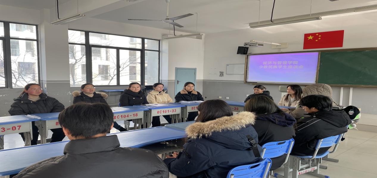 12月29日,经济与管理学院在滨江校区A203教室召开了少数民族学生座谈会,学院党总支书记刘明娟、副书记欧阳文清以及各班级辅导员参加了此次座谈会。